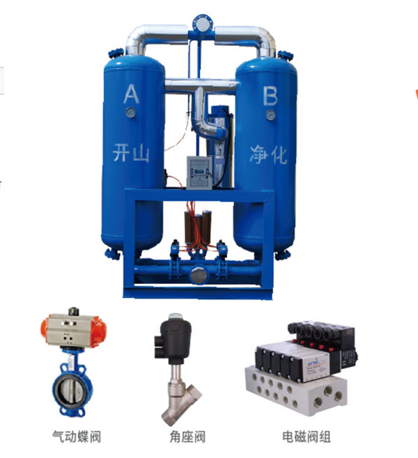 压缩空气干燥剂常用的主要有冷冻式压缩空气干燥机和吸附式干燥机两种类型,其中冷干机具有无气量损耗,能耗低的优点,但却有露点温度的局限性,而吸干机虽具有露点低的优点,但却有再生气损耗大,能耗高的缺点。开山公司研制开发的低露点组合式压缩空气干燥机,就是综合了冷干机与吸干机制各自优点,通过合理的管道连接和容量搭配,最大限度地发挥二者的优点,从而达到最佳经济运行点和高品质的低露点成品气。